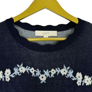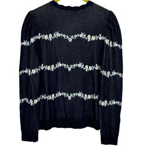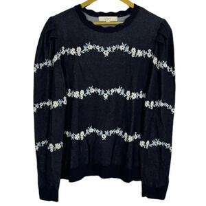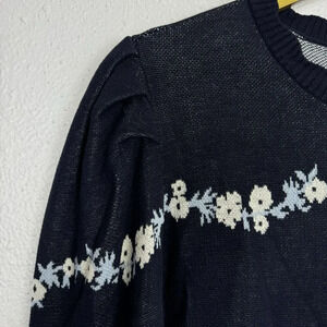 Loft Sweater Floral Cottage Country Round Neck Pullover XL Blue Puff Sleeves