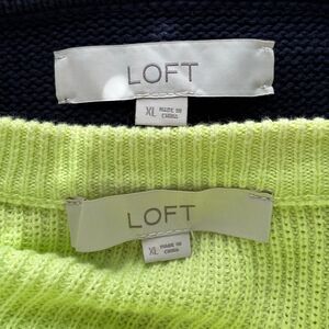 Loft Sweater LOT Pullover Henley Off Shoulder Navy Blue Yellow Size XL C130