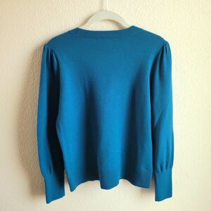 Loft Sweater Medium Teal Puff Sleeve Solid Round Neck Long Sleeve Soft 593282