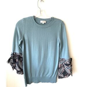 Loft Sweater Paisley Sleeves Blue Green Size XS Petite