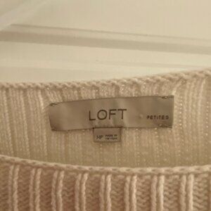 The Loft Sweater in women's size medium petite is a stylish and versatile addition to any wardrobe. Made by the brand LOFT, this sweater is designed specifically for petite women, ensuring a perfect fit. The classic white color adds a timeless touch to any outfit, making it a staple piece for the colder weather. With its medium size and cozy sweater style, this top is perfect for staying warm and fashionable during the chilly seasons.