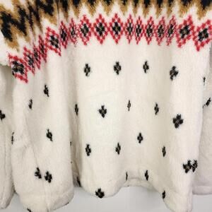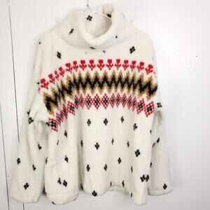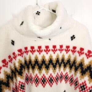 Loft Sweater Womens L Sherpa Soft Nordic Fair Isle Print Colorful Turtleneck