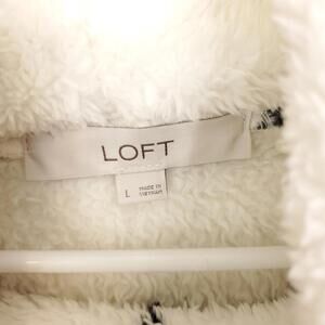 Wrap yourself in the coziness of this LOFT Women's Sherpa Soft Nordic Fair Isle Print Turtleneck Sweater. With its vibrant white and colorful Fair Isle pattern, it's a stylish addition to any fall or winter wardrobe. The pullover is designed for comfort, featuring a lightweight yet warm polyester fabric that's easy to care for – machine washable for convenience.Crafted for both travel and casual occasions, this size large sweater offers a regular fit with long sleeves to keep you snug. The turtleneck design provides extra warmth, making it an ideal choice for those cooler days. Its indoor and outdoor themes blend perfectly for versatile wear.