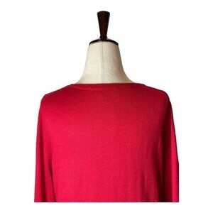 Loft Sweater Womens S Red Knit Crewneck Long Sleeve Button Detail Pullover