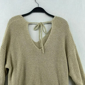 Loft Sweater Women's Sz 14 Plus Beige Knitted V-Neck Gold Metallic Tie-Back Good pre-owned condition. No rips nor tears. Please refer to the pictures for the condition and measurements. All items are stored in a pet-free, smoke-free environment. Items typically ship the next business day. Sold as pictured, thank you for looking. Our SKU: J4(86-2)23