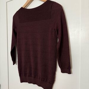 Loft Sweater Womens Sz XS Burgundy Knit Pullover Round Neck Wool Blend
