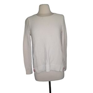 Loft Sweater XS White Crew Neck 100% Cotton. Dimensions pit-pit 17.5", shoulder-cuff 24", shoulder-bottom hem 23.5" (0187)