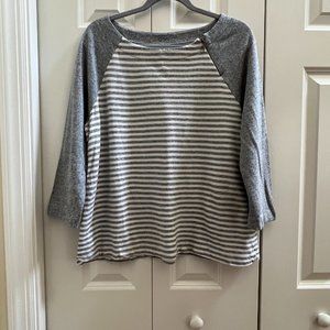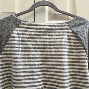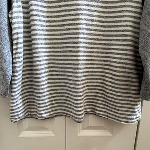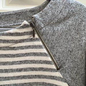 Like new Loft sweatshirt in size XL. colors are gray and white. Banana neck with zipper on left front shoulder. 100% cotton. Machine wash cold, dry low.