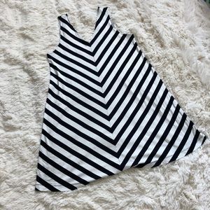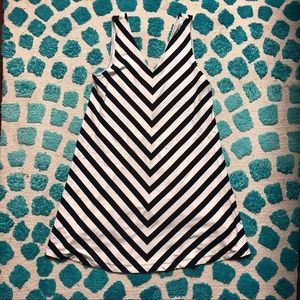 Gently worn loft swing dress in navy and ivory chevron design size S! Measurement and fabric tags pictured!