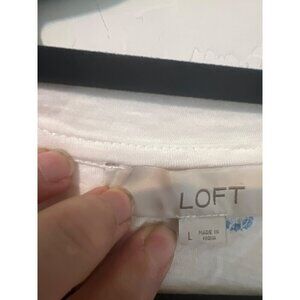 This Loft Sz L T-shirt features a unique horseshoe motif, with vibrant multicolor embroidery adorning the V-neck. The shirt is perfect for casual wear and offers a comfortable fit.