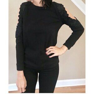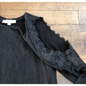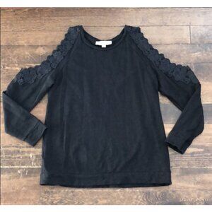 Loft Sz S Black Lace Embroidered Cold Shoulder Light Sweatshirt Top Blouse Women