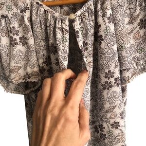 Loft Sz XS Peasant Boho Top Blouse Floral Neutral Keyhole Ruffled Cottagecore