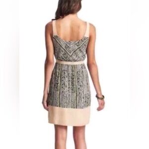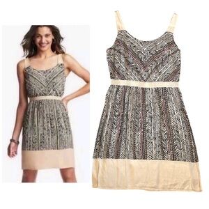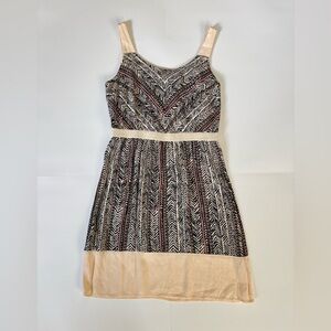 Loft Tan & Black Geometric Print Sleeveless Summer Dress Size 2 Petite excellent condition