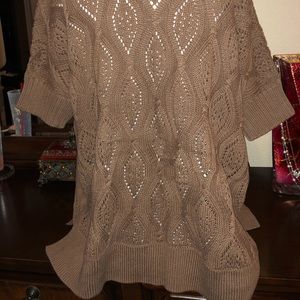 Cable knit. Open front. Short sleeve.