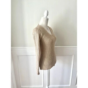 Loft Tan Metallic V Neck Chunky Knit Sweater XSP Petite