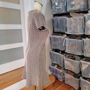 Loft Tan and Navy Geometric Flared Hem short Sleeve Dress Size 2