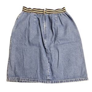 Loft Tan Silk Blend 3/4 Sleeve Blouse and SC Surplus Blue Denim Skirt Set sz S with 2 extra tops. See photos for details and approximate measurements. Skirt appears to have been altered.