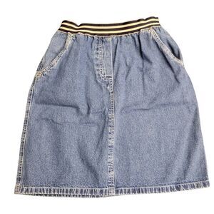 Loft Tan Silk Blend 3/4 Sleeve Blouse and SC Surplus Blue Denim Skirt Set