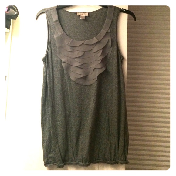 Grey Tank from the Loft, ruffles are a lighter grey and there is elastic at the bottom. (Worn once)