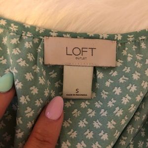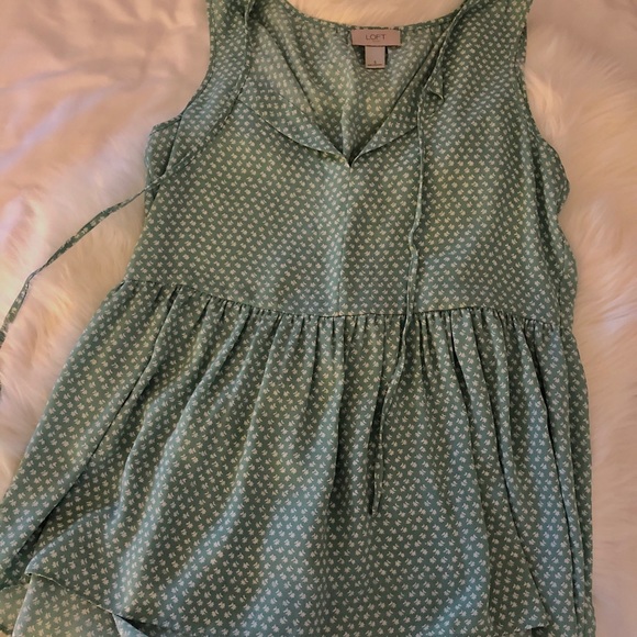 This is a Loft Tank with ties in the front and a loose peplum detail. The color is a pastel green/blue.