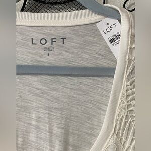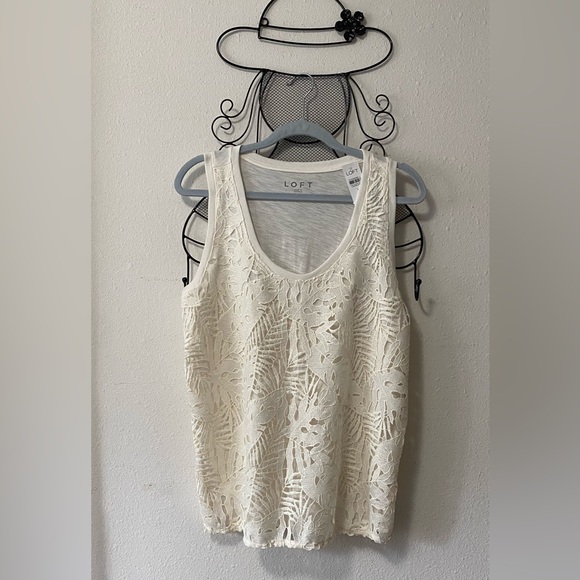 Loft tank top, off white color with a pretty "lace" design overlay. Front is lined, back is solid. New with tag. Large.