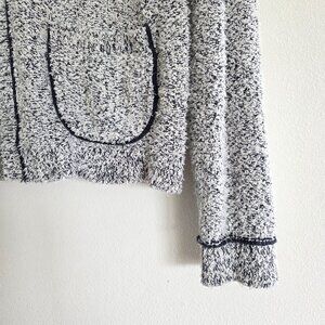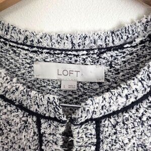 Loft soft terrycloth knit cardigan sweater in neutral colors to go with many outfits. The is plush like teddy knit, but the mostly cotton quality makes the piece more substantial- less grabby, cleaner more tailored look. Hook and eye closures on the front.