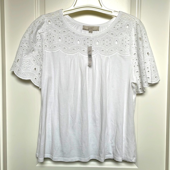 NWT Adorable Loft tee. See pics for the detailed design on the sleeves and upper part of the shirt. Size is medium.