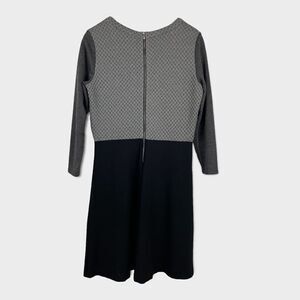 LOFT Color-block Fit & Flare Knit Dress. Textured bodice, space-dye sleeves, black skirt with Exposed back zipper