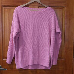 Loft Textured Knit Coral Pink Boat Neck Pull Over Sweater LG