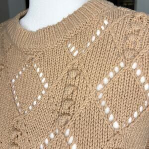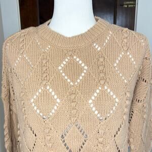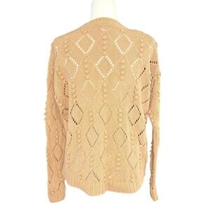 Loft Textured Knit Sweater Women's M | Beige | Open Weave High Low | EUC