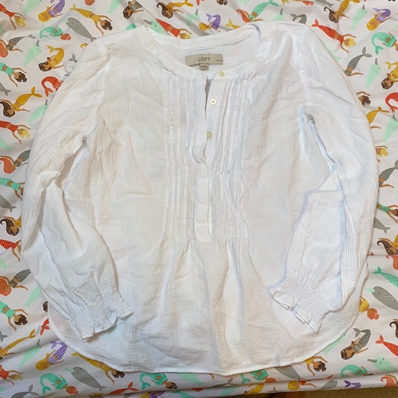 Loft Textured Pintuck Ruffle Cuff Blouse