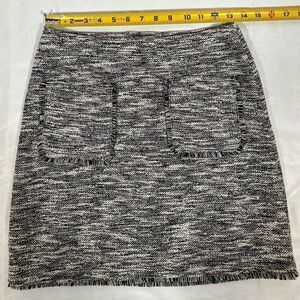 Loft Textured Tweed mini skirt fringe black white gray with pockets chic summer