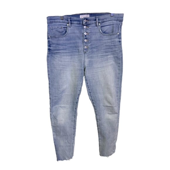 Loft The Skinny Destructed Button Front Light Wash High Rise Cropped Jeans