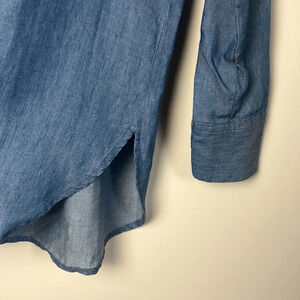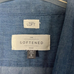 Loft “The Softened” Chambray Blue Tie Front Long Sleeve Top Blouse Size S