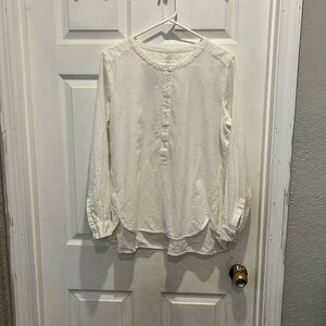 Loft The Softened Shirt White Cotton Popover Women’s Large Coastal Lagenlook