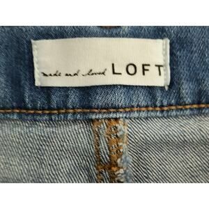 Loft The Straight Crop Jeans Women's Sz 4/27 Hi Rise Medium Wash Frayed Denim