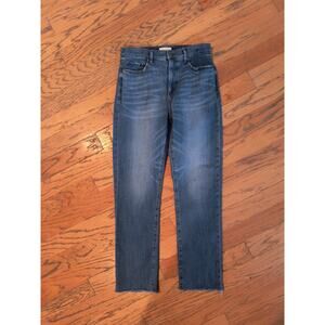 Loft The Straight Crop Jeans Women's Size 4/27 Hi Rise Medium Wash 5 Pocket Frayed Hem Blue Denim