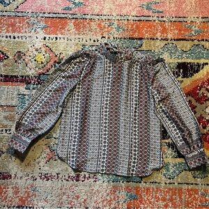 Loft Tiled Tie Back Mock Neck Blouse size S NWT