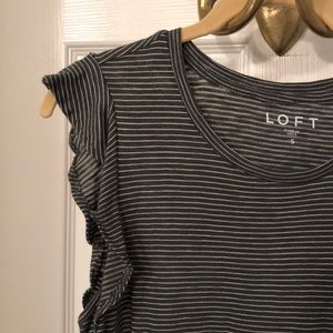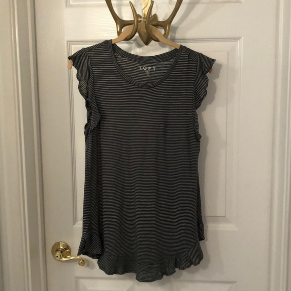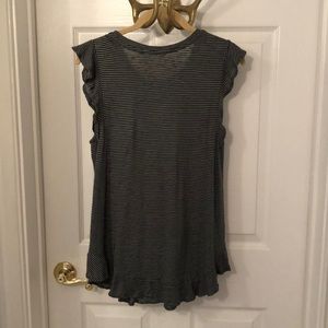 Adorable casual top with ruffle detail. Petty hunter green color!284) subtle white stripe. Worn only once!