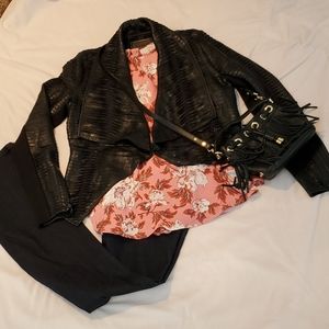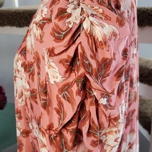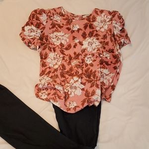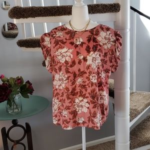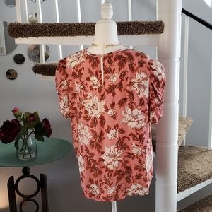 Fall color top with flower print and ruched sleeves. Versatile to dress up or down. Smoke-free household.
