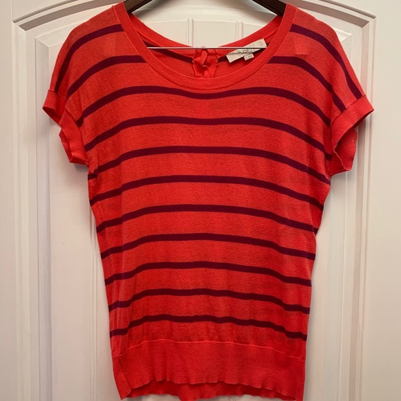 Ann Taylor Loft Top. Striped Coral and purplish color. Size Medium.