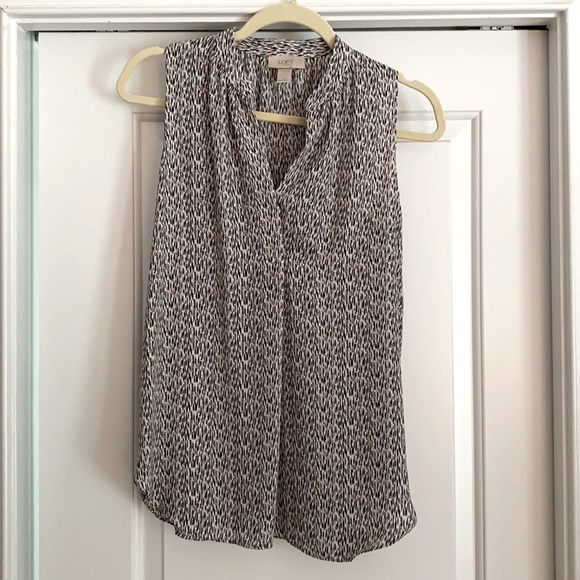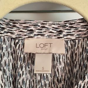Loft Top pattern has black, light teal, and light violet colors. Very flattering.