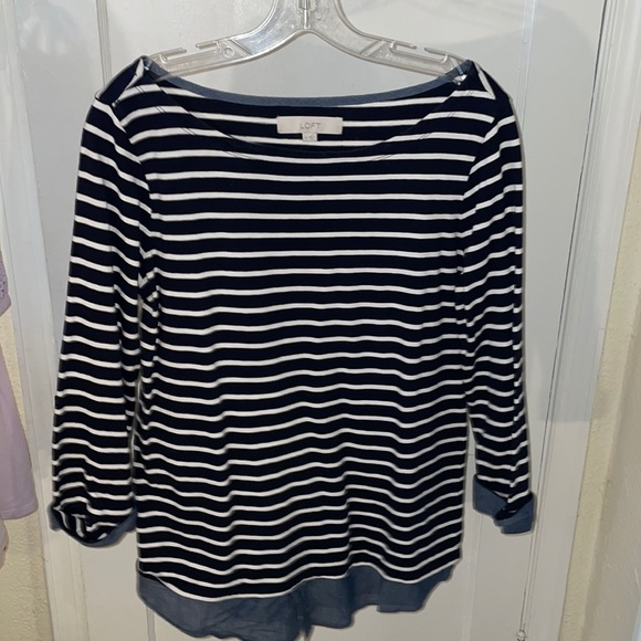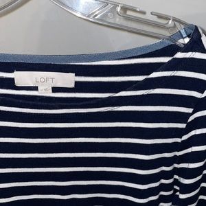 Navy and white stripe top with Chambray hemline and cuffs LOFT size Medium GUC