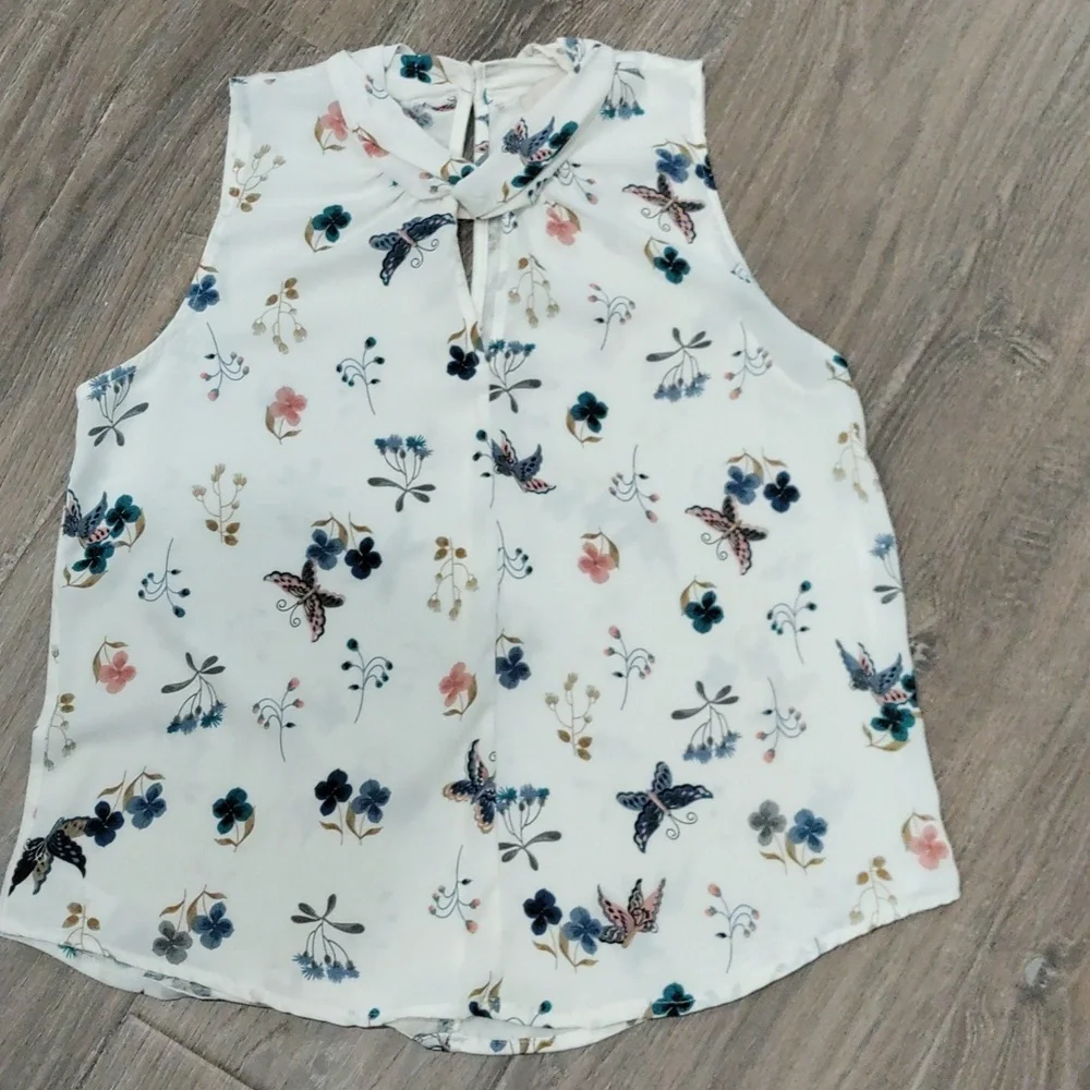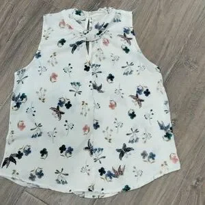 LOFT Floral sleeveless Top Color beige with blue and orange flowers Size small Excellent Condition