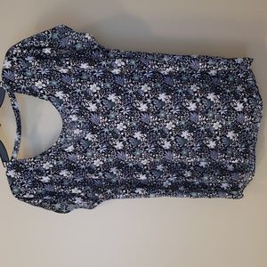 EUC! This blue floral top has a super cute cut out in the back and looks great with white capris or shorts. No rips, tears or odors and ALL items in my closet come froma smoke free home.