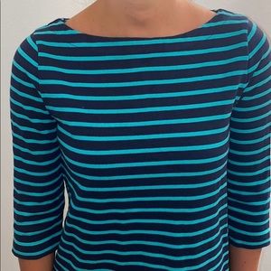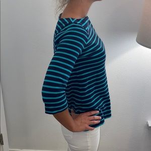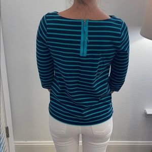 3/4 sleeved top with zipper back Green and blue striped top