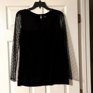 Long sheer dotted sleeves Cotton bodice Round neck