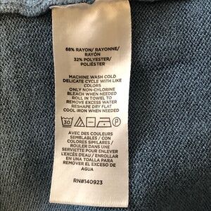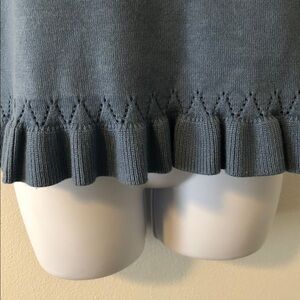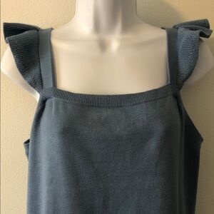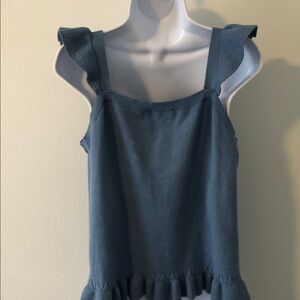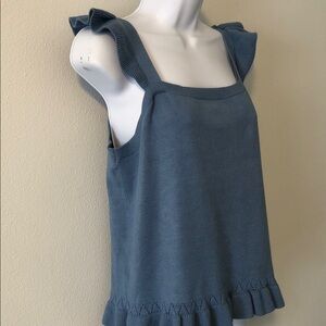 Blue Top with Square Neckline and Flutter Ruffle to Straps botten small Ruffle. Good Used Condition.