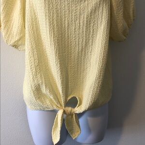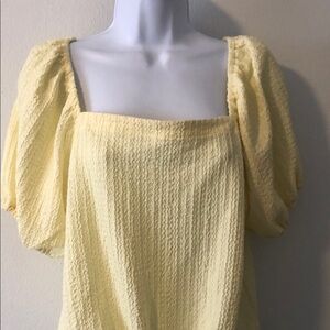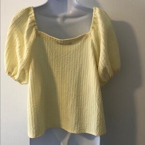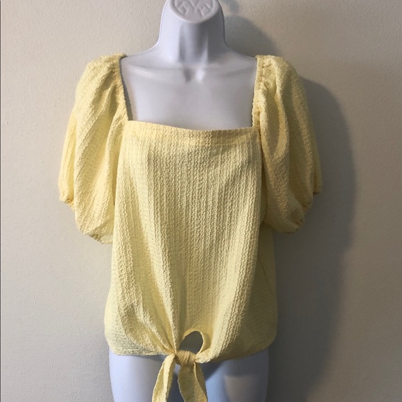 Yellow Tie Crop Top. Featuring Square neckline with Short Elastic Sleeves. Good Used Condition.