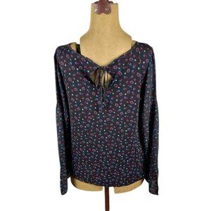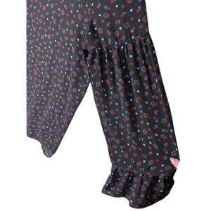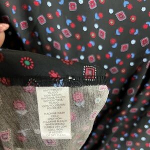 Loft Top Black Geometric Pattern Red, Blue Flutter Sleeve Women's Size S
